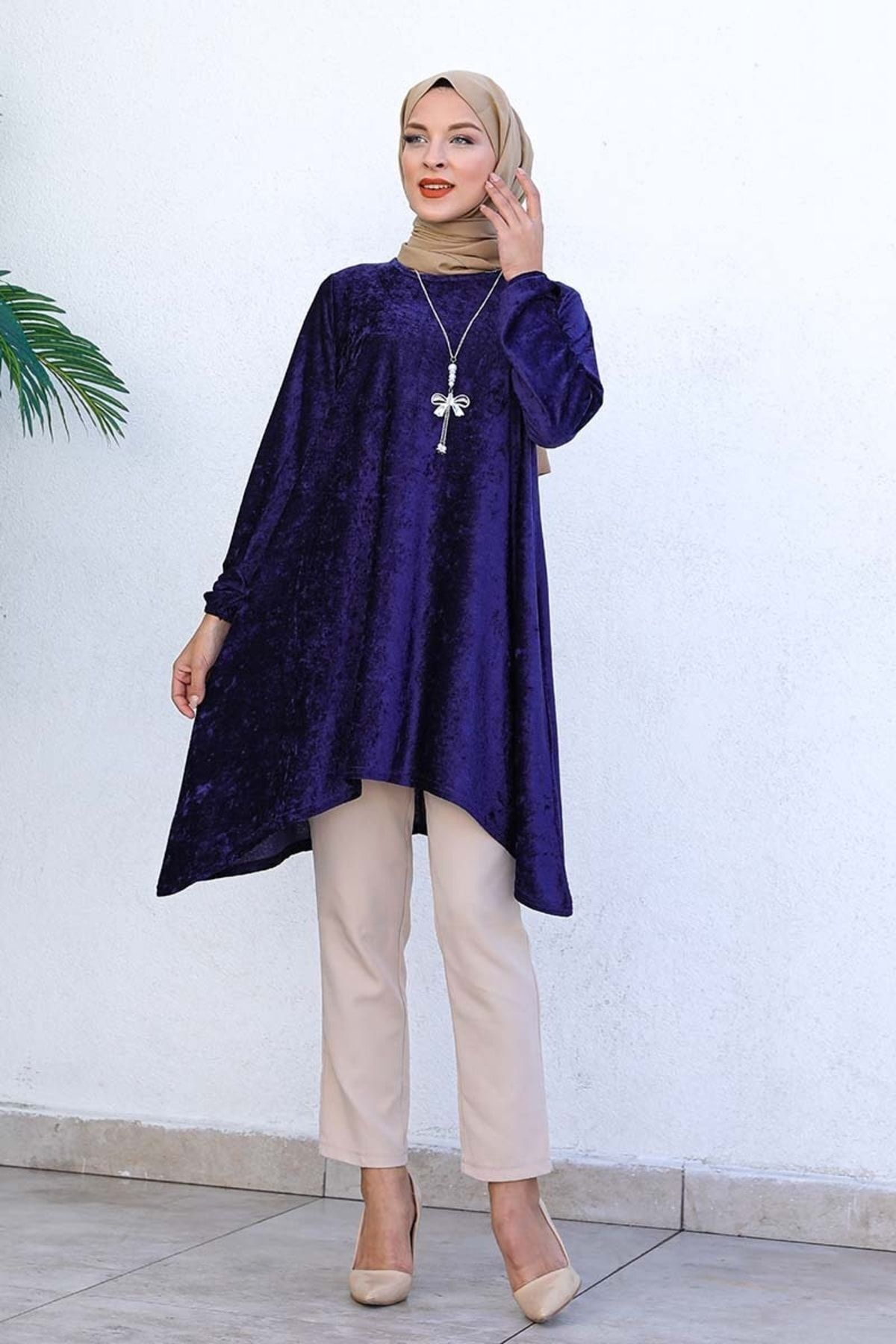 Asimetrik Model Kadife Tunik Lacivert; KUMAŞ : Örme Krep; KOL : Uzun Kollu; MEVSIM : 2 Mevsim; DETAY: asimetrik kesim,kolye; KALIP : Tam; Mankenin Giydiği Beden: 38; Yeni sezon tesettür moda ürünüdür. İç göstermez. Ürünümüz 38-52 beden aralığındadır, tam kalıptır. Kendi bedeninizi tercih edebilirsiniz.; Yeni sezon tesettür moda ürünüdür. İç göstermez. ; Ürünümüz 38-52 beden aralığındadır, tam kalıptır. Kendi bedeninizi tercih edebilirsiniz.; MANKENIMIZIN ÖLÇÜLERI :BASEN : 89, BEL : 67, GÖĞÜS : 87, BOY : 170, KILO : 54; MANKENIMIZIN ÖLÇÜLERI :;