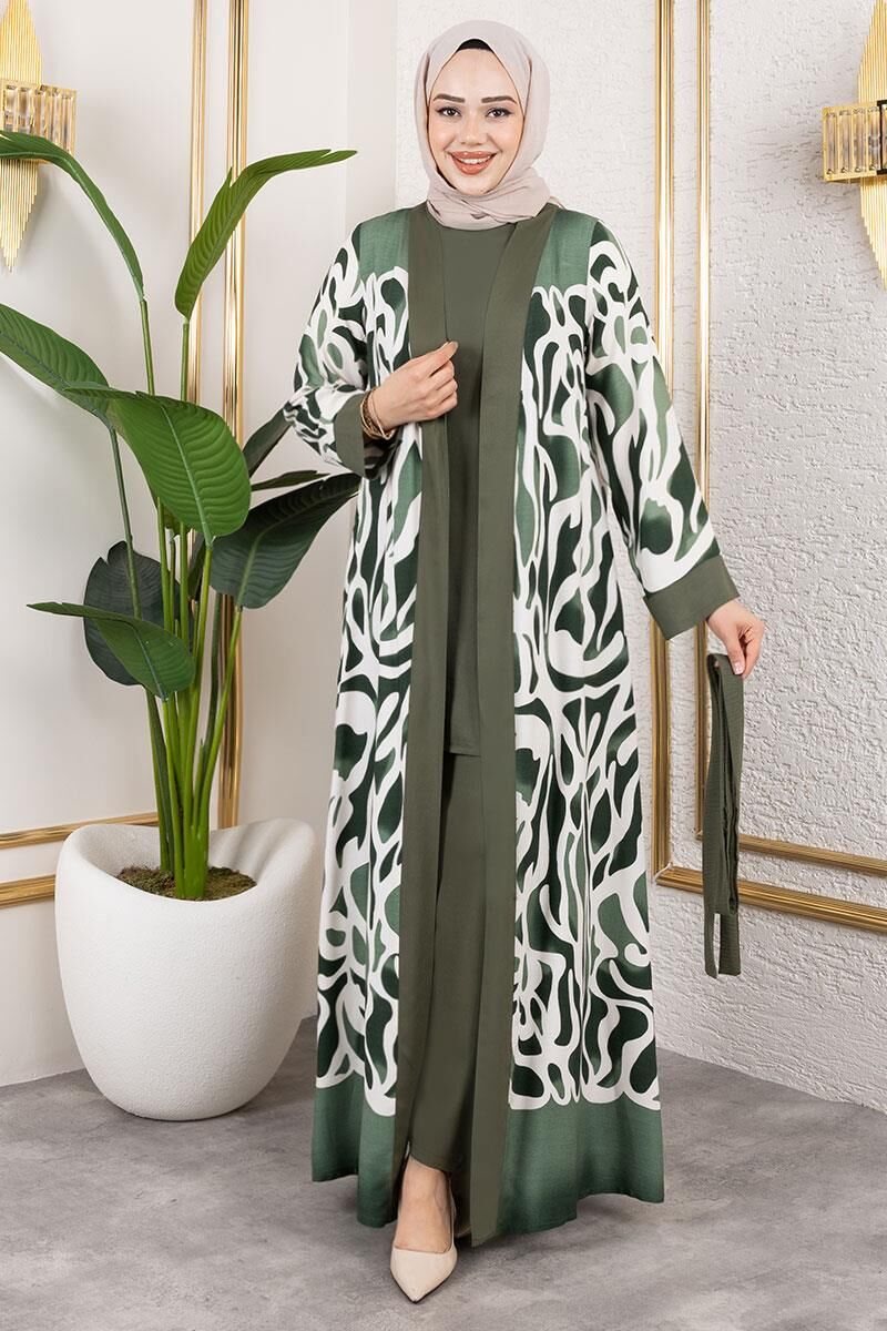 Desenli Üçlü Viskon Takım
