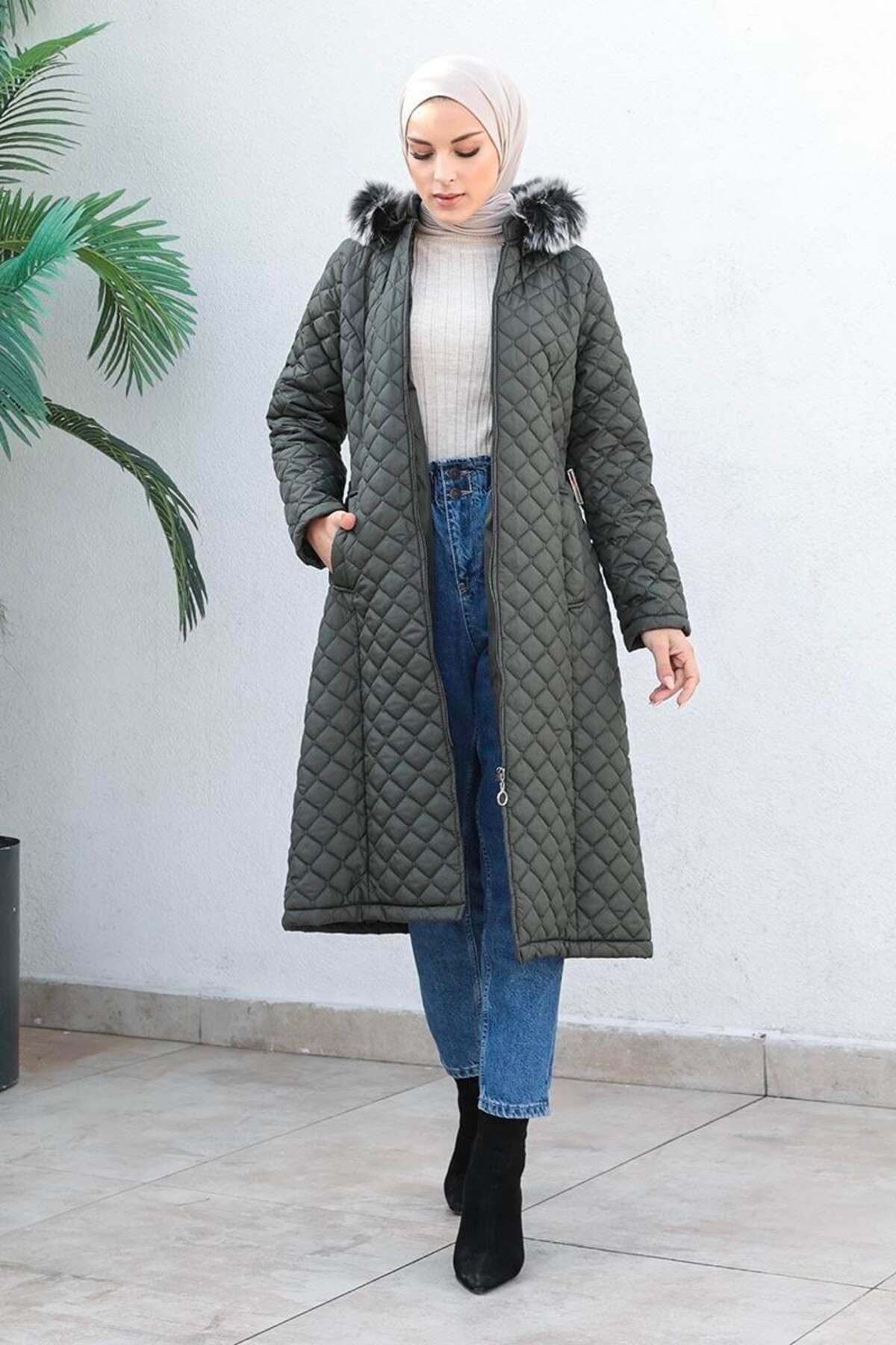 Kapitone Kadın Şişme Mont Haki