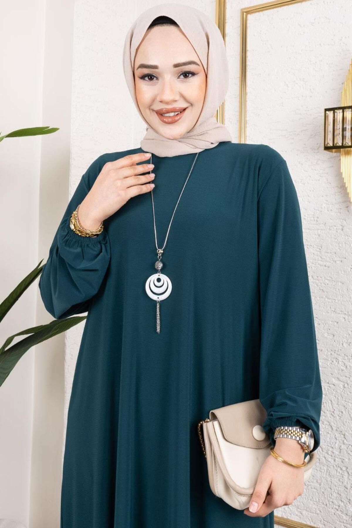 Kolyeli Sandy Elbise 2099zumrut_yesili